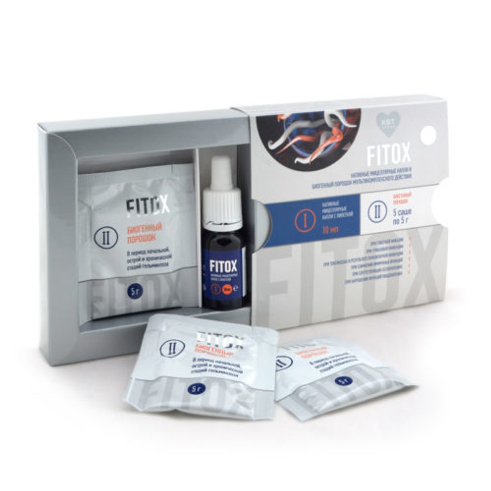 FITOX — мицеллярный мультикомплекс на основе нативной вытяжки лекарственных растений. Он разработан с учетом индивидуальных изменений организма на фоне гельминтоза, содержит формулу модифицированного высвобождения активных природных ингредиентов, действующих на все виды и стадии источников глистной инвазии и сопутствующие осложнения со стороны иммунной, нервной, эндокринной, пищеварительной, сердечно-сосудистой, мочеполовой, бронхо-лёгочной, костно-мышечной и кожи.