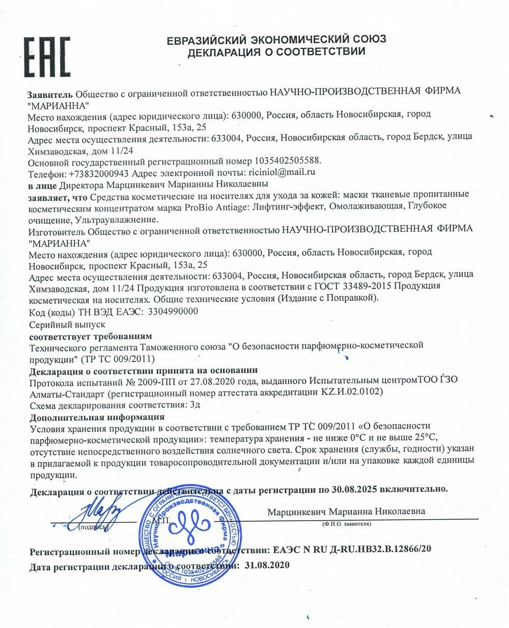 Способ применения: очистите кожу лица. Извлеките маску, разверните ее и плотно приложите к лицу на 15–30 минут (желательно лечь и расслабиться). После снятия маски похлопывающими движениями распределите по коже остатки состава. Не требует смывания. Применять 1–2 раза в неделю по необходимости.