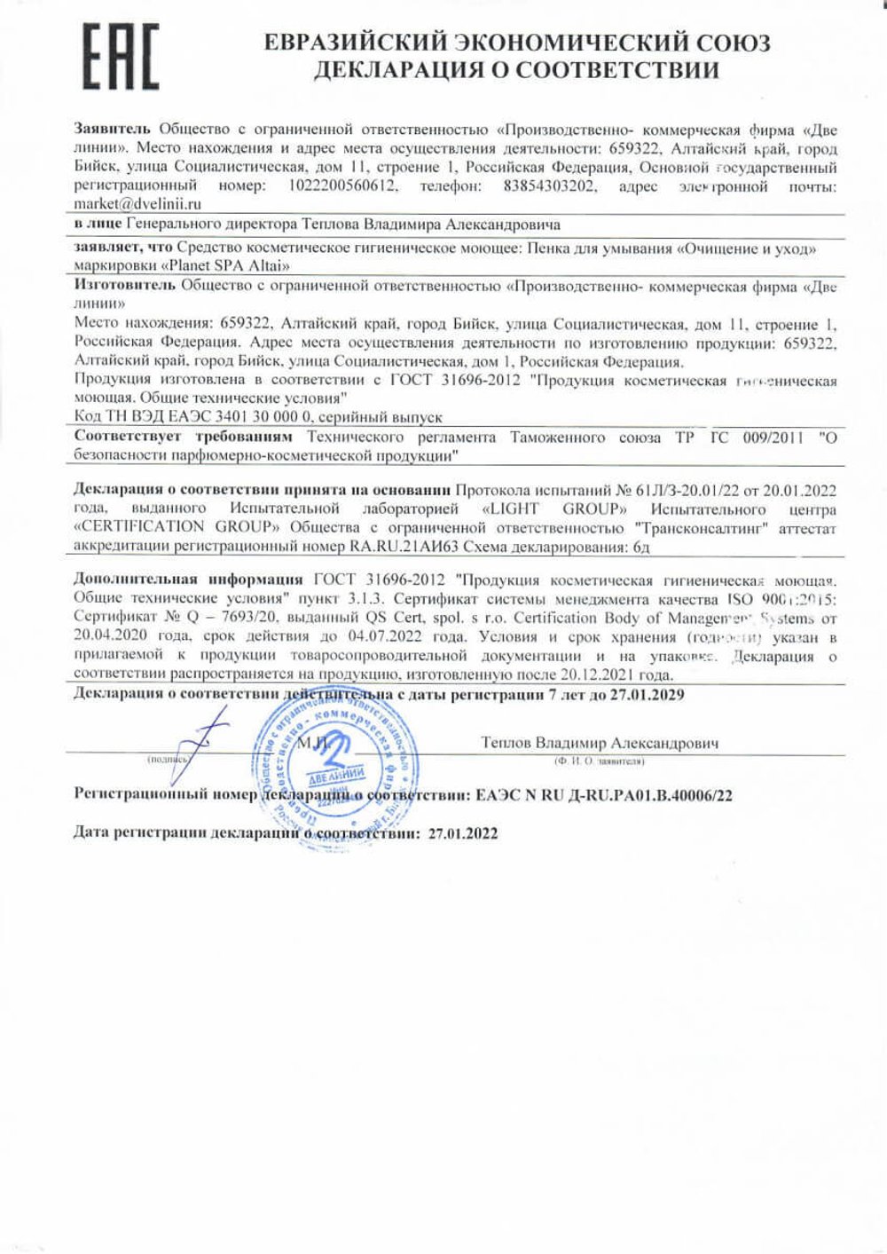 Пенка для умывания «Очищение & Уход» Planet SPA обладает составом биоактивных компонентов с сильным увлажняющим, регенерирующим и очищающим действием: